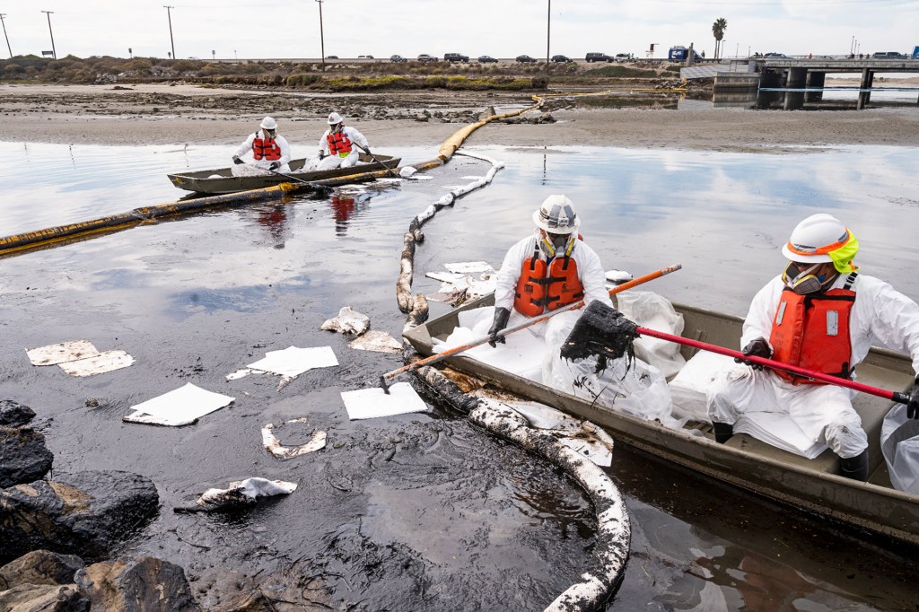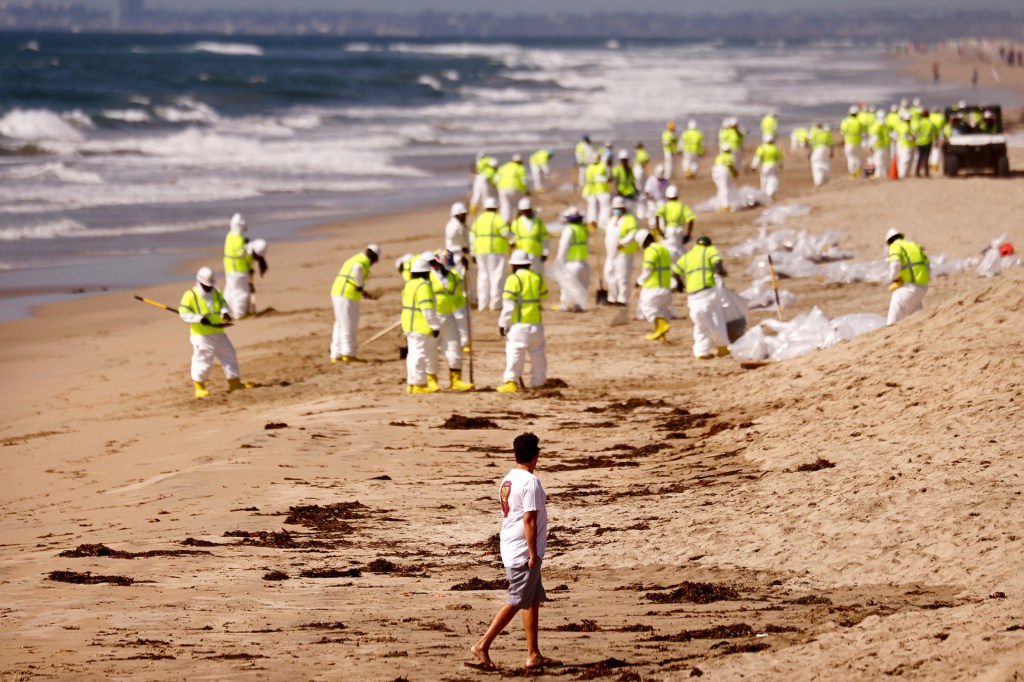 En octubre, una tubería bajo el agua tuvo una pérdida. El petróleo se vertió en el Océano Pacífico. Esto ocurrió cerca de Huntington Beach, California. El petróleo cubrió el agua por millas. Un poco fue arrastrado a la costa. Se cerraron las playas. Desafortunadamente, los derrames de petróleo no son poco comunes. Cuando ocurren, pueden causar mucho daño.