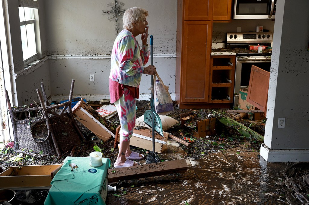 CLEANUP A woman looks over her flood-damaged apartment in Fort Myers on September 29.
