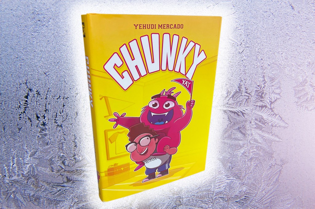 Chunky, by Yehudi Mercado, is a colorful graphic memoir. When the author was a kid, his parents and doctor encouraged him to be more active. In the book, Hudi tries sports, including baseball, soccer, and football. But they all take Hudi away from the thing that he’s truly passionate about: comedy. His imaginary friend and mascot, Chunky, appears throughout the story to help Hudi achieve his dreams. Chunky is a great book for kids who want to read about friendship, family, and trying to find where they might fit in. —By TFK Kid Reporter Lucy Sandor
