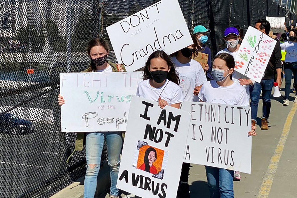 IVANA LEEShe expected about 70 people. More than 1,200 showed up. They carried signs: “We Have Power,” “I Am Not a Virus,” and “Stop Asian Hate!!!” Mina led the crowd on a march to a footbridge crossing a freeway, where people posted their signs on the fence. Cars passing below honked in support. Mina knows that racism isn’t new. She and her brother have been called names. And she has studied United States history.