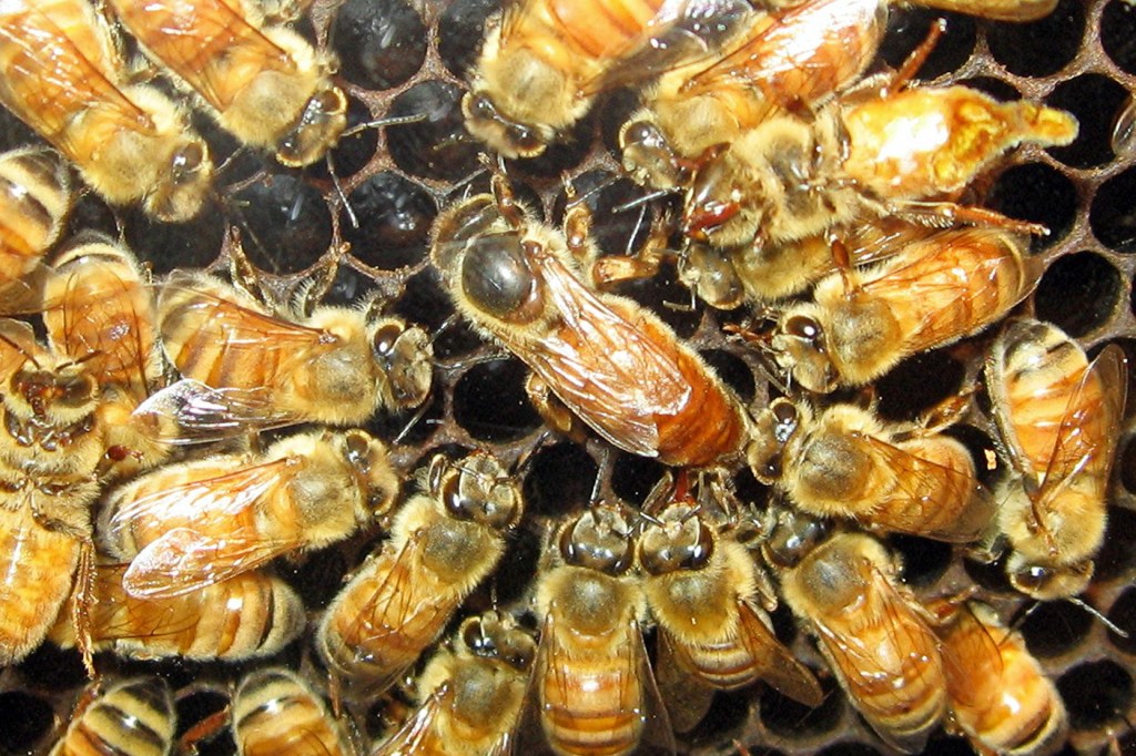Las vacunas generalmente se administran con una aguja. No esta. Se mezcla con jalea real. Las abejas obreras hacen la cosa azucarada para alimentar a la reina. La vacuna daría inmunidad a la enfermedad a los bebés de la reina. Eventualmente, toda la colonia sería inmune.