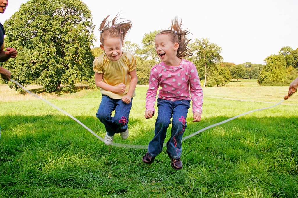 What are your favorite things to do? Ask a friend to do them with you. You can play games, read, or go for walks. These friends are jumping rope.