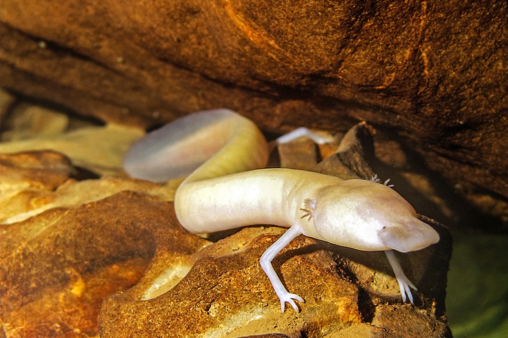 Olms can survive with little food. These cave salamanders can go years without eating. They cannot see well. But their other senses are strong.