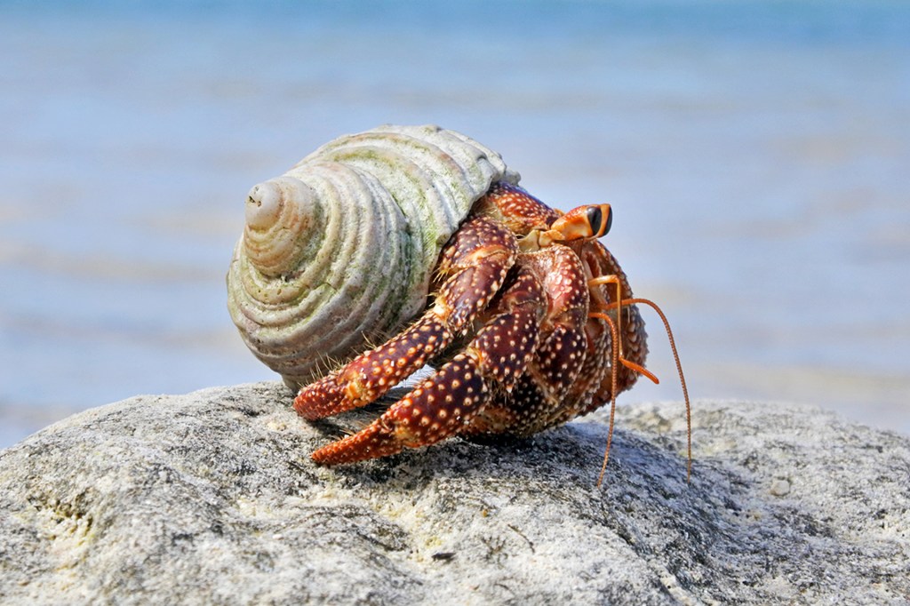 Los cangrejos ermitaños usan conchas marinas para proteger sus cuerpos blandos de predadores.