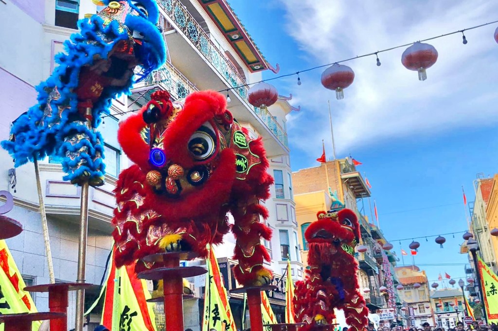 ¿Has visto a leones merodeando por las calles? Ocurre durante este tiempo del año. Los leones bailan al ritmo de un tambor. No son leones reales. Son bailarines en disfraces de leones.