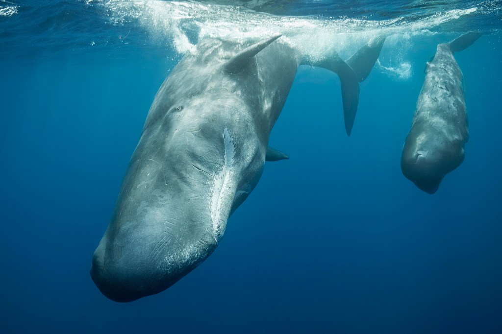 Los cachalotes se sumergen miles de metros para cazar. Se sumergen más profundo que cualquier otro mamífero marino.
