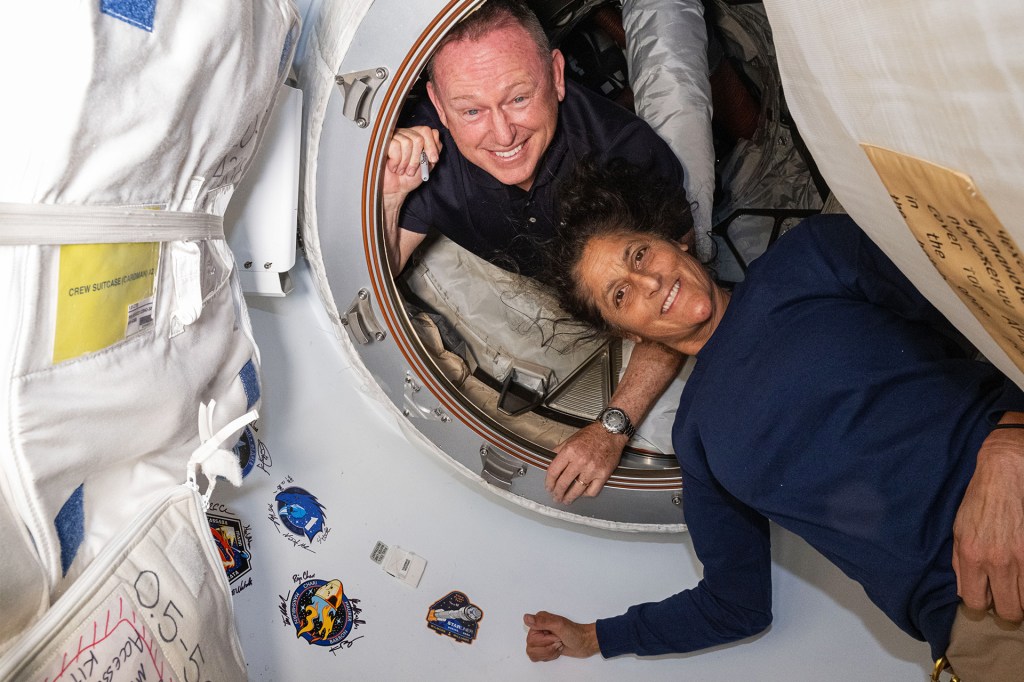 Los astronautas Butch Wilmore y Suni Williams posan para una foto en el espacio el 13 de junio de 2024.