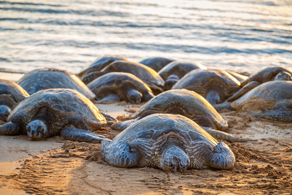 Green sea turtles help maintain healthy seagrass beds. Their name does not come from their shell color. It comes from the color of their fat.