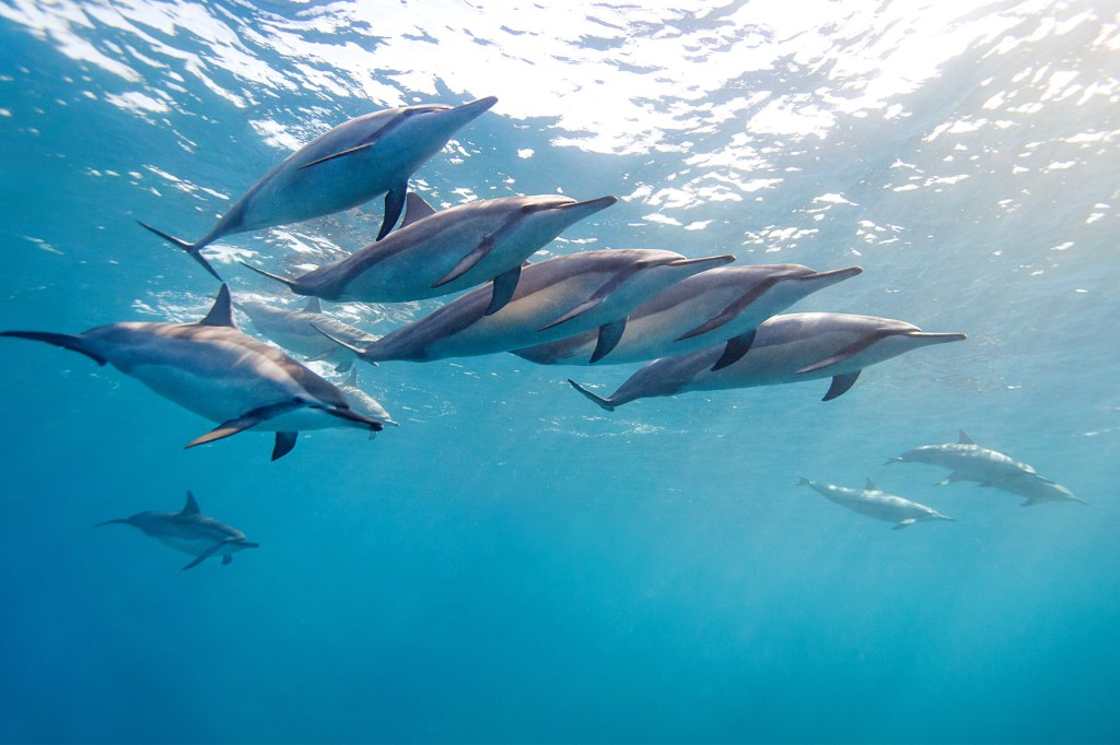 Spinner dolphins are named for a special ability. They can leap high out of the water. As they do, they spin in the air. Often, others join in!