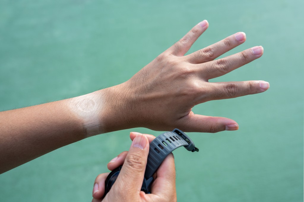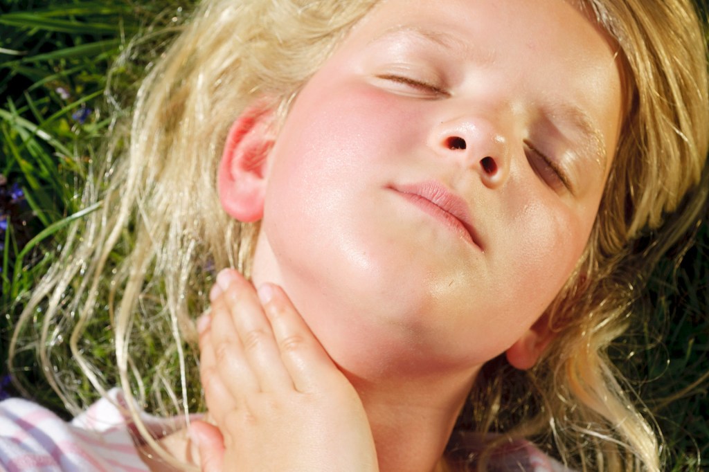 A sunburn can happen if you get too much sun. The sun’s rays can damage your skin. It turns hot and red. Ouch! Sunscreen can prevent this. SPF stands for sun protection factor. Look for SPF 30 or higher.