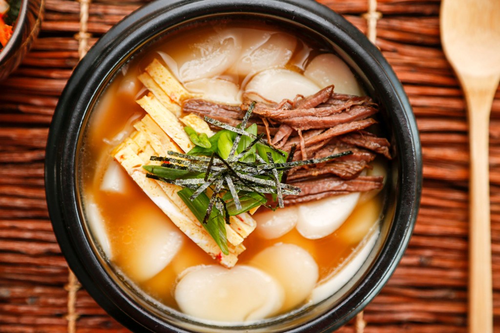 In Korea, rice cake soup is served. The rice cakes look like coins. For some families, they represent wealth and prosperity.