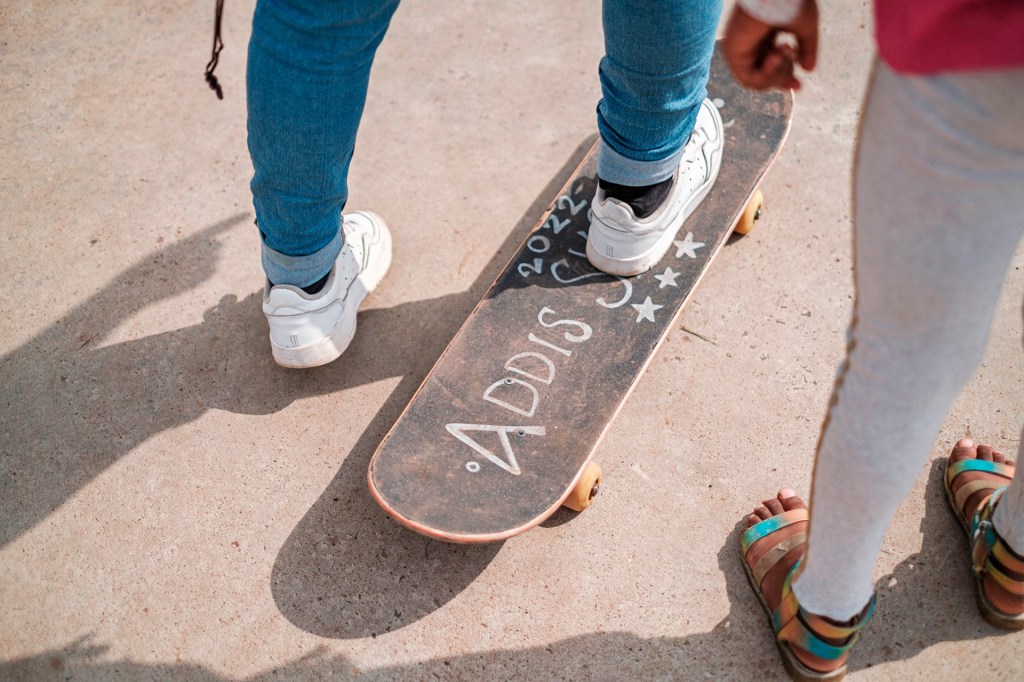 Look at some of the skateboards used at Addis Skatepark, in Ethiopia. You’ll see the word desta. It means “joy” or “happiness” in Amharic. That’s an official language of the country.