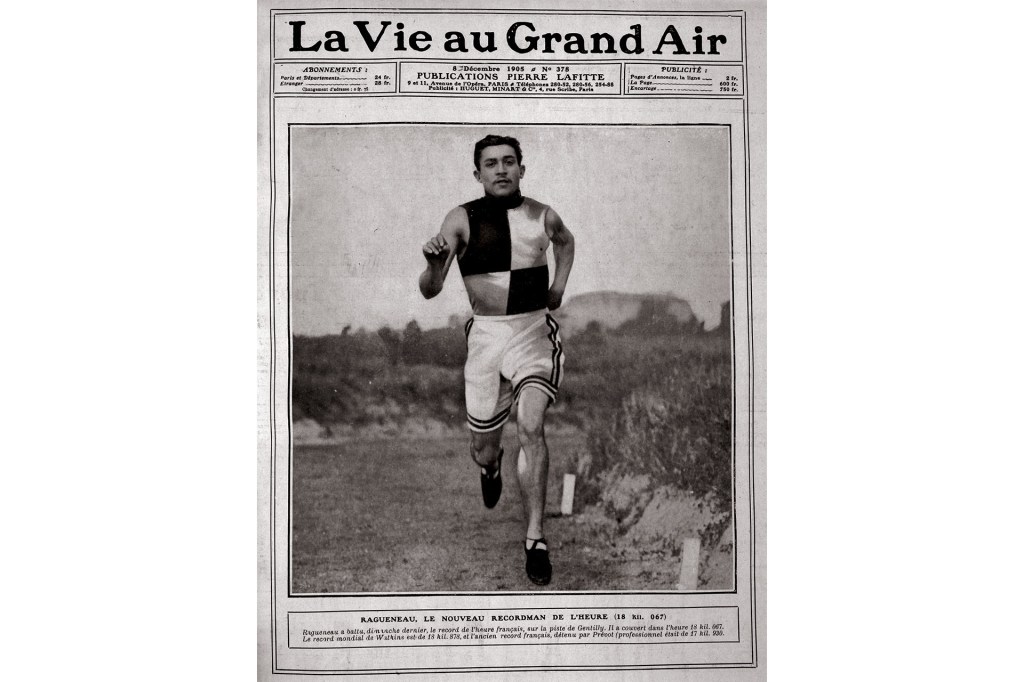 Una portada vieja de una revista francesa muestra a un corredor que compitió en los Juegos Olímpicos de París en 1900.