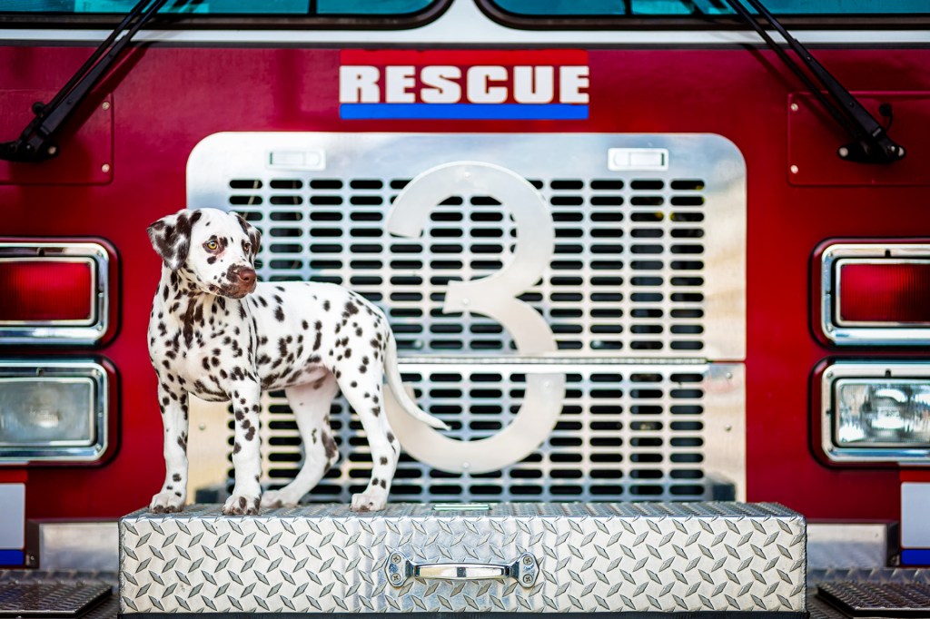 Dalmatians are known for working at fire stations. In the past, they would clear the way for horse-drawn fire trucks. They also guarded equipment. Some stations still keep them as friendly companions.