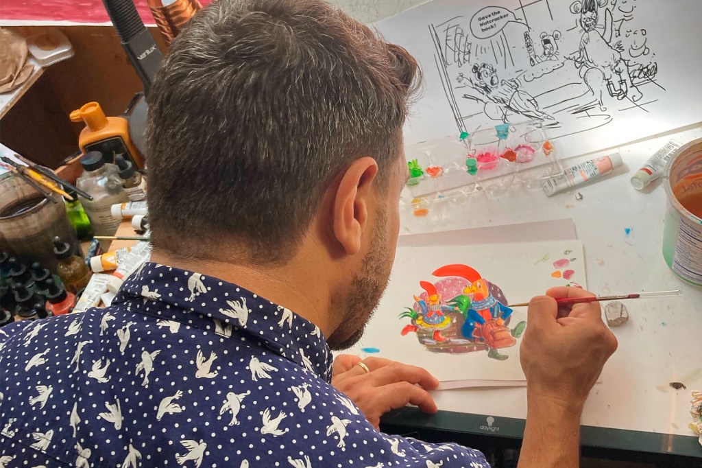 Stein pinta una ilustración para un nuevo libro, Interrupting Chicken Saves the Nutcracker. Estará disponible en Septiembre.