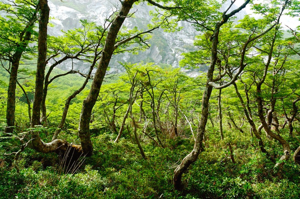 Este es un bosque nativo en Chile, en América del Sur. Muchos bosques como este se convirtieron en fincas para obtener madera.