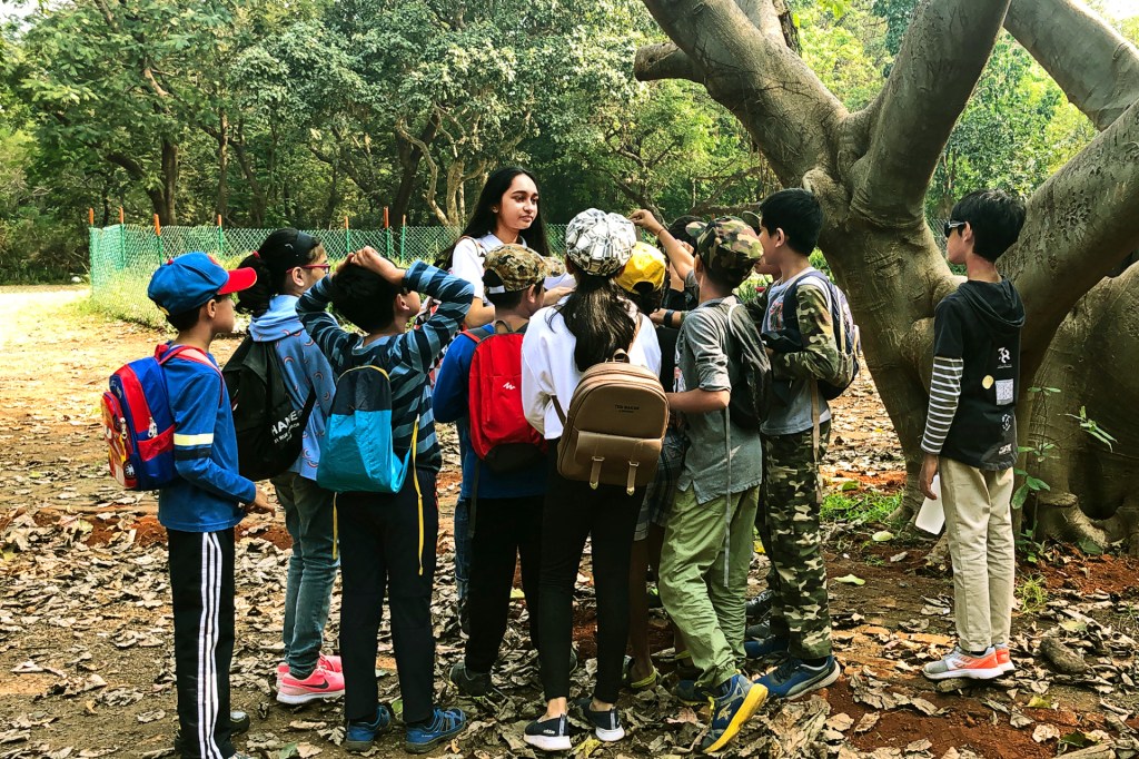 Aadya Joshi enseña a una clase sobre las plantas nativas en India.