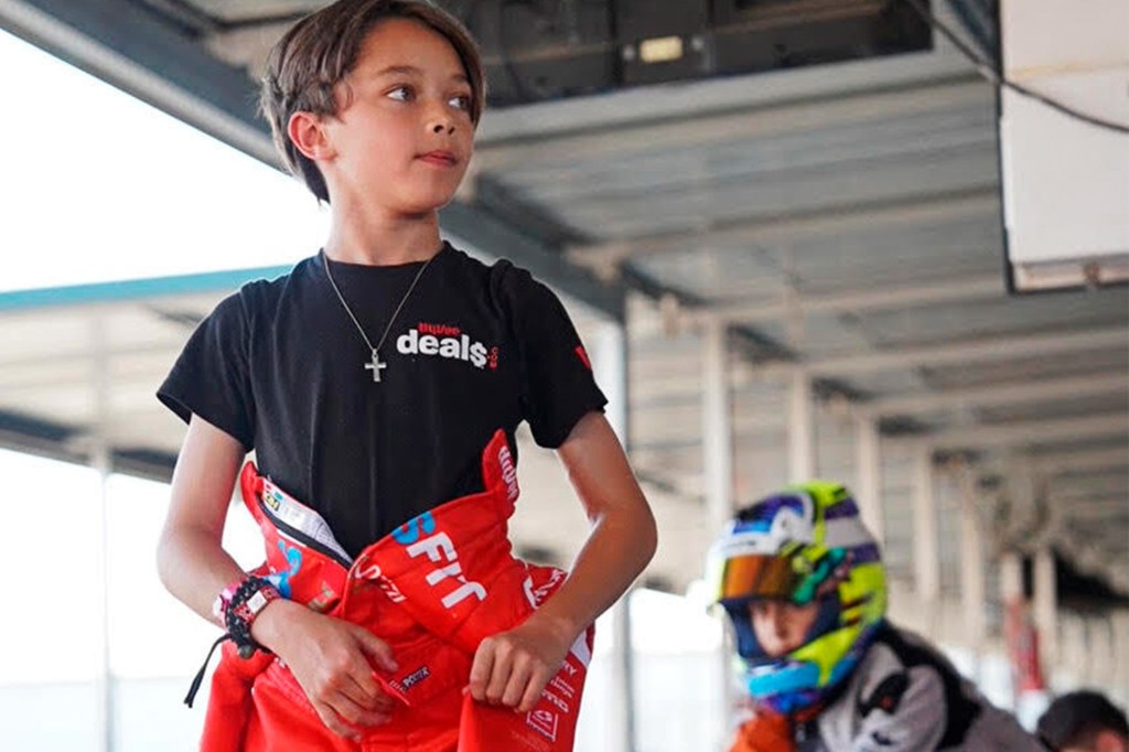 Jaxon Porter prepares for a race at the Orlando Karting Center, in Florida, in 2023.