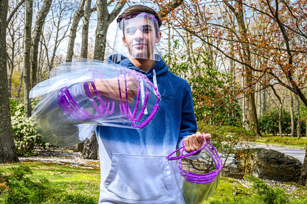 This teenager used a 3D printer to make plastic face shields. He made them during the pandemic. They were given to healthcare workers and police officers.