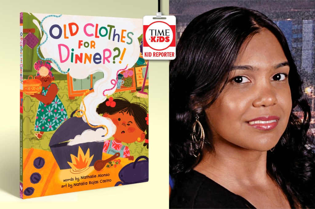 Old Clothes for Dinner, by Nathalie Alonso, is about a girl named Magaly. Her grandmother has just moved in. Magaly loves her abuela’s Cuban cooking. But then, her grandmother says she’s making ropa vieja. Magaly knows this is Spanish for…