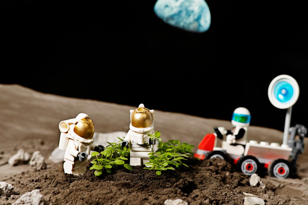 For fun, Jones created a model moon farm. He used Lego figures. He also used the same kinds of plants that scientists grew in moon soil. His pictures show how moon farms might work.