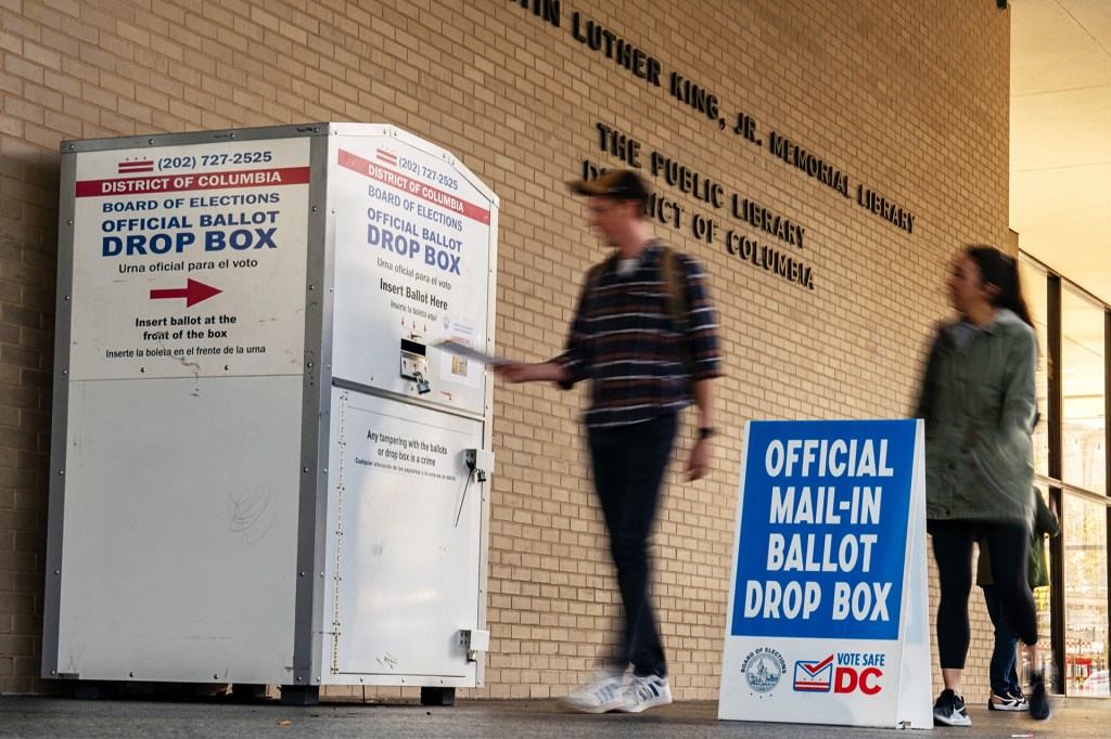 Un votante deja una boleta en Washington, D.C., el 3 de noviembre. Las personas pueden votar temprano, en persona o por correo.