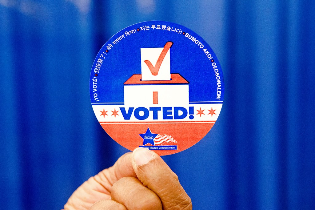 Algunas personas reciben una calcomanía cuando votan. Esta es de Chicago, Illinois.