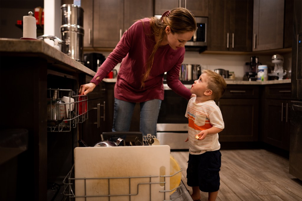 MAKING DO A mom in Rio Verde Foothills loads a dishwasher. The family uses paper plates to save water.