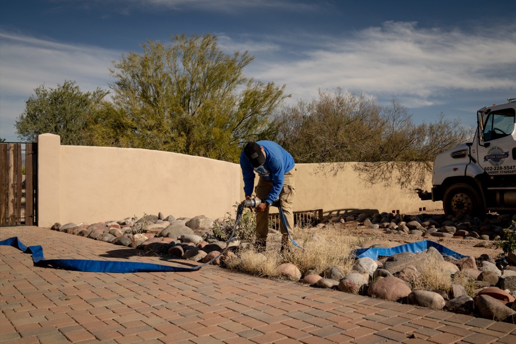 FILLING UP A water hauler fills a tank at a home in Rio Verde Foothills. Costs are up since Scottsdale cut off the supply.
