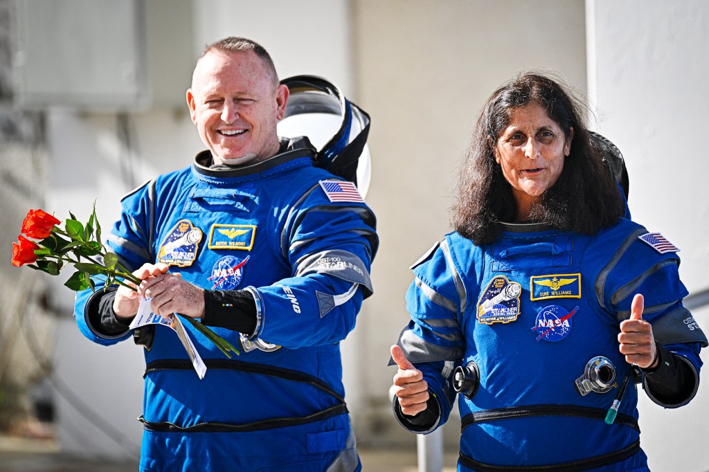 PRUEBA... Butch Wilmore y Suni Williams se dirigen a una prueba de vuelo el 1 de junio, antes del lanzamiento.