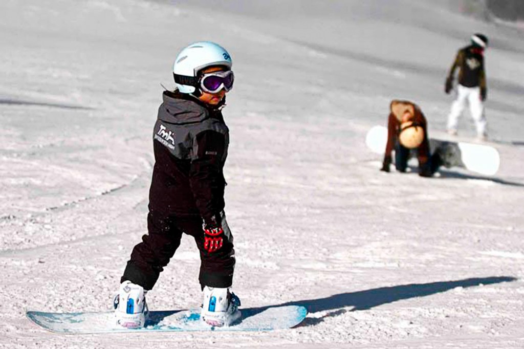 YOUNG CHLOE At age 6, Kim practices her snowboarding skills in California.
