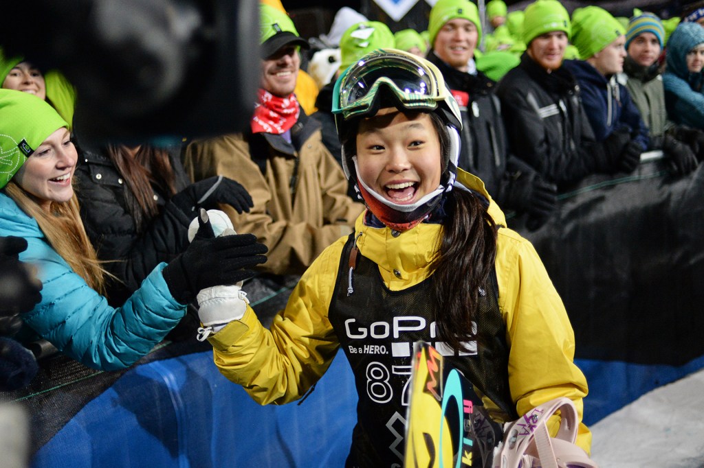 RISING STAR At 13, Kim celebrates after snagging silver at the 2014 Winter X Games.