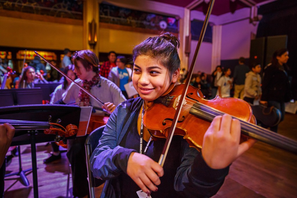 HACER MÚSICA Los violines y las violas están entre los instrumentos que los estudiantes tocan en la Orquesta Juvenil de Los Ángeles.
