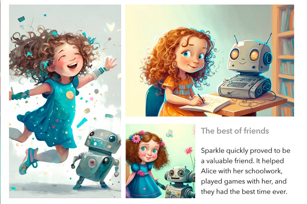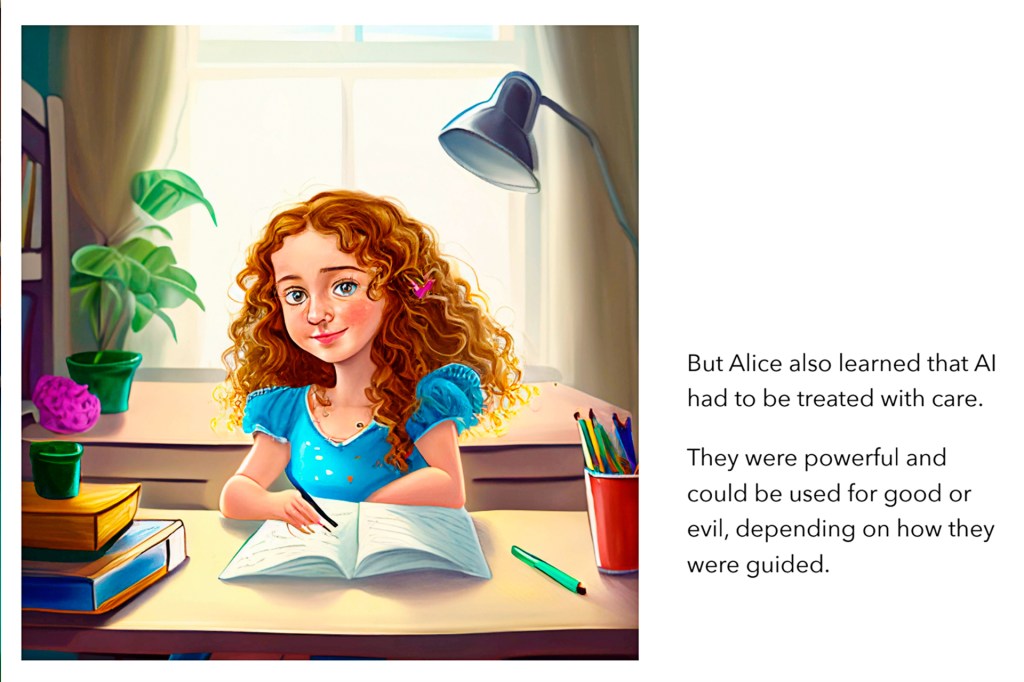 One day, Ammaar Reshi was playing around with a chatbot called ChatGPT. It’s a computer program. It uses artificial intelligence (AI) to imitate thinking and writing. Reshi decided to use it to make a children’s book. The chatbot helped Reshi come up with a story about a girl named Alice. Reshi made illustrations using another AI program, Midjourney. It translates words into images.