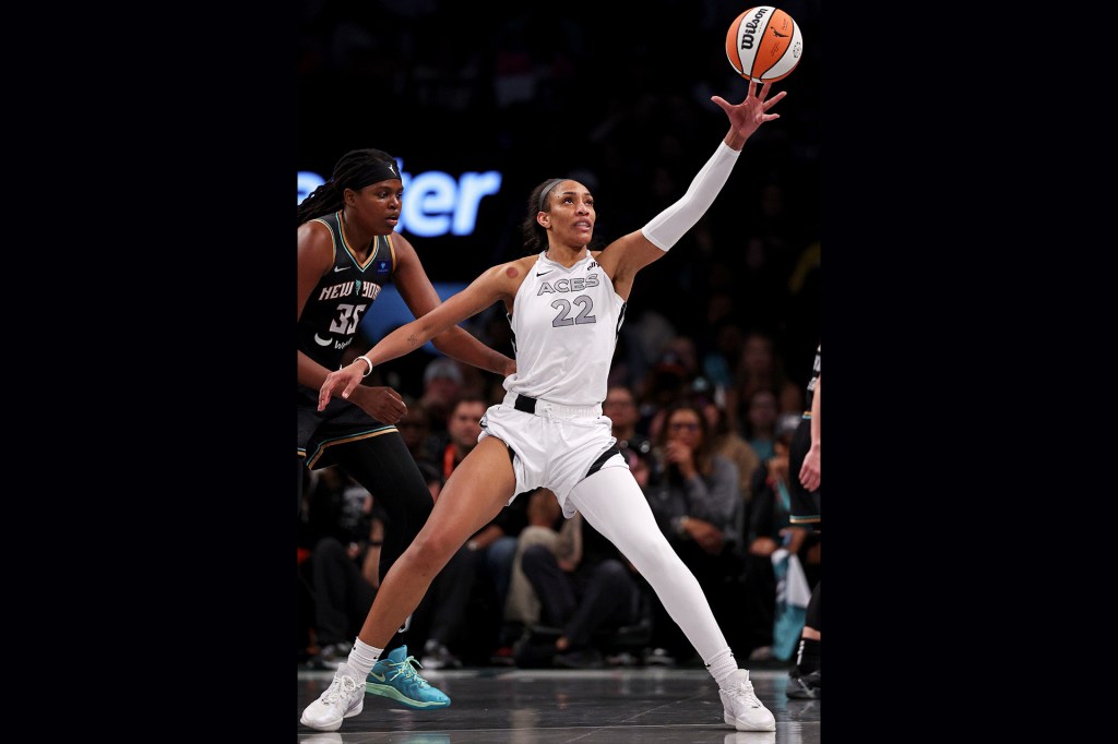 ALERTA DE MVP A'ja Wilson recibe un pase el 1 de octubre. Este año, Wilson se convirtió en la primera jugadora de la WNBA en alcanzar los 1,000 puntos en una temporada.