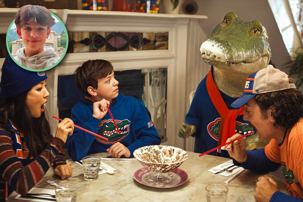 TOGETHER TIME Winslow Fegley (inset and center) appears with Constance Wu, Lyle the Crocodile, and Javier Bardem.
