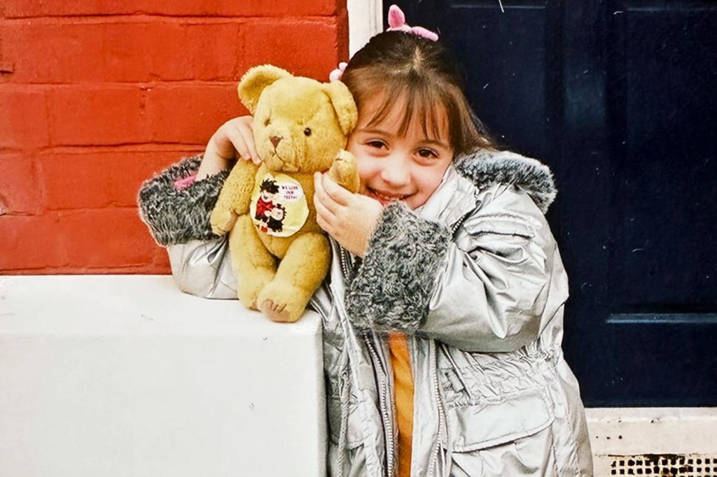 FAVORITE FRIEND Charlotte Liebling, who founded Loved Before, shows off a beloved bear in a childhood photo.