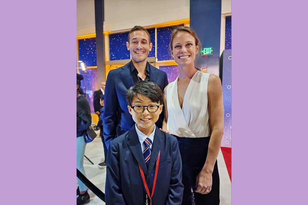 GREETINGS FROM EARTH TFK Kid Reporter Aiden An meets director Ryan White and producer Jessica Hargrave, in Los Angeles, California.