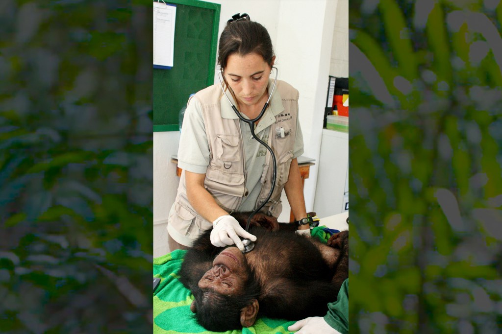 MEDICAL CARE Rebeca Atencia examines a chimpanzee at the Tchimpounga Sanctuary, in the Republic of the Congo.