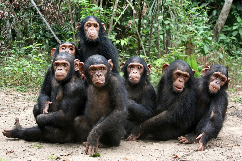 SAY “CHEESE” Chimpanzees at the Tchimpounga sanctuary sit for a group shot.