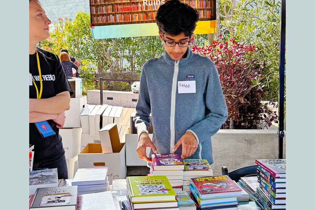 On a sunny Saturday in late February, Rohan Mukhopadhyay unpacked 10 boxes of children’s books. He was at the Beehive, a venue in Los Angeles, California, with his family. They arranged the books on folding tables. The books had been donated. They came from authors, publishers, and others. Rohan, 13, was giving them away. It was part of a program he started called Reading Among Ruins.