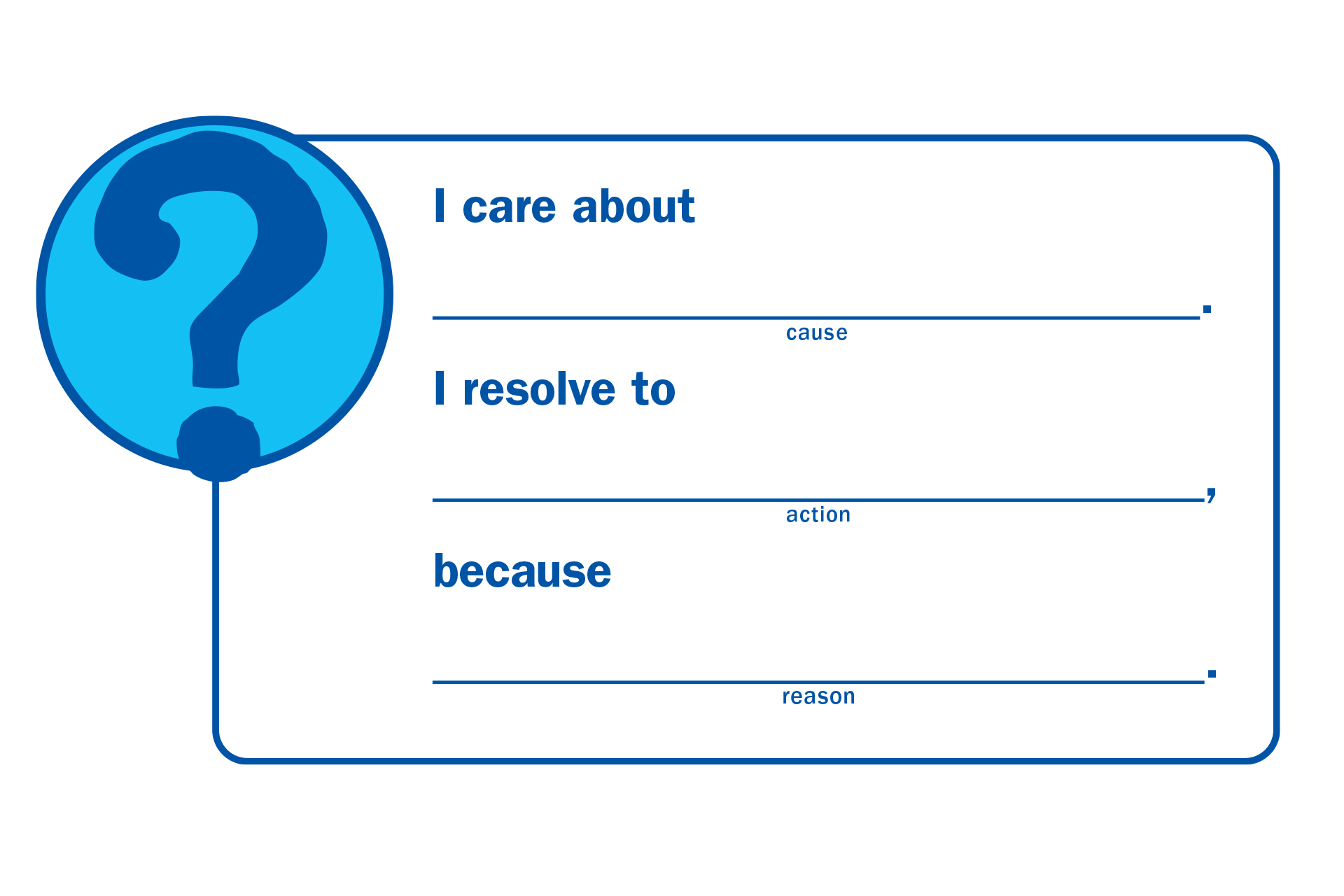I care about addressing loneliness. I resolve to introduce myself to new kids in my class and invite them to play with me at recess, because everyone should have a friend.