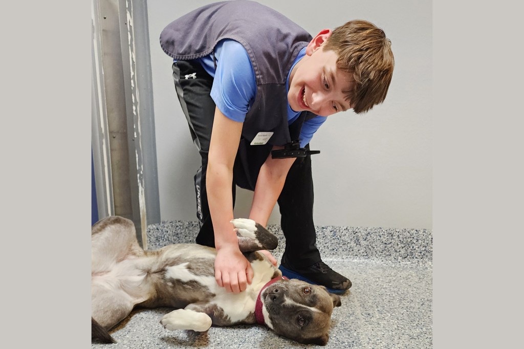 MIMOS Luna, una perra rescatada en el centro Maclean-Cameron, disfruta del tiempo de juego con Hayden.