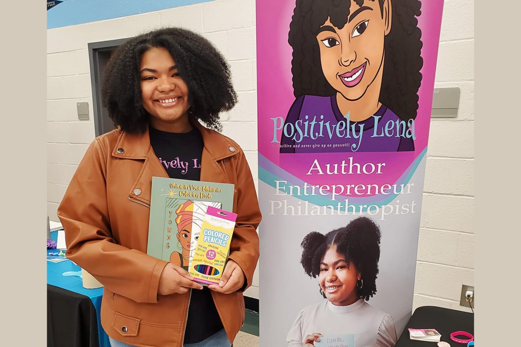 COURTESY TRESSIE BLOODWORTHDos años más tarde, empezó Positively Lena. Vende productos con mensajes alentadores. Uno de los productos es un libro que escribió para ayudar a los niños a lidiar con el acoso. “El mundo puede ser un lugar muy difícil”, dice Lena. “Mi objetivo es contagiar positividad”. También ofrece talleres. Enseña escritura creativa, emprendimiento y álbumes de recortes. Parte del dinero que gana se destina a sus esfuerzos caritativos.