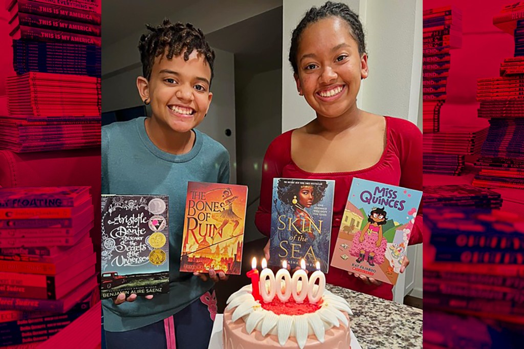 MAJOR MILESTONE In January 2023, the siblings celebrate having given away 10,000 books.