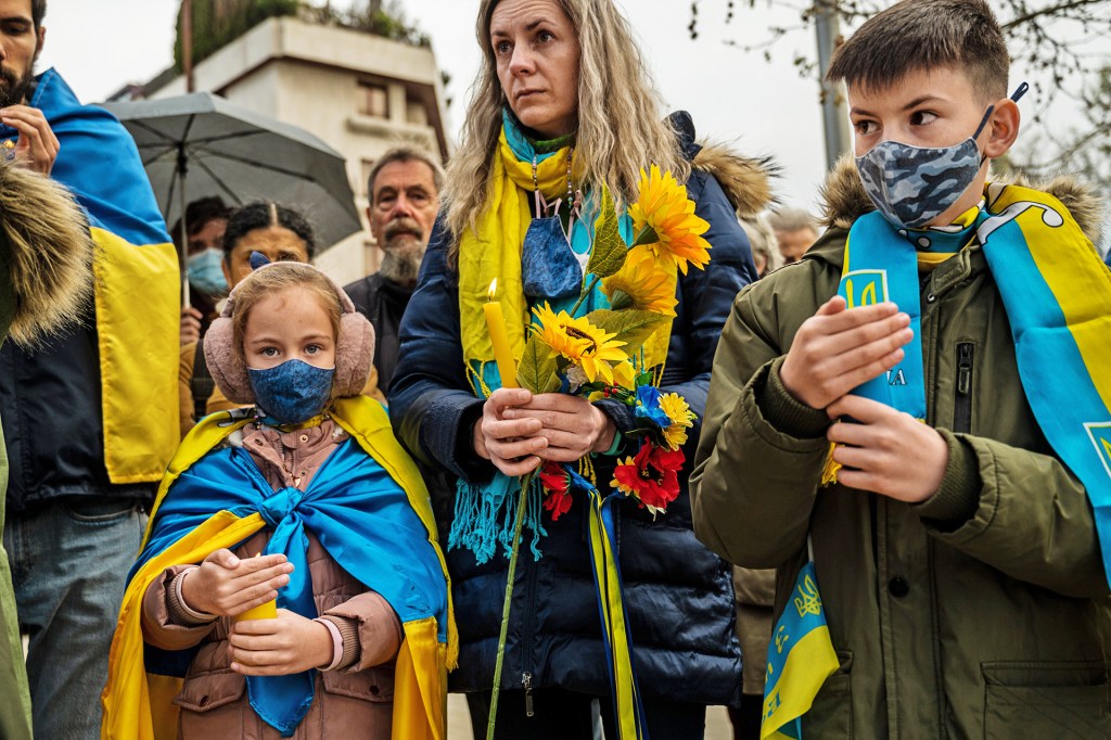 SHOW OF UNITY These protesters are carrying candles and wearing the Ukrainian flag in Madrid, Spain, on March 31.