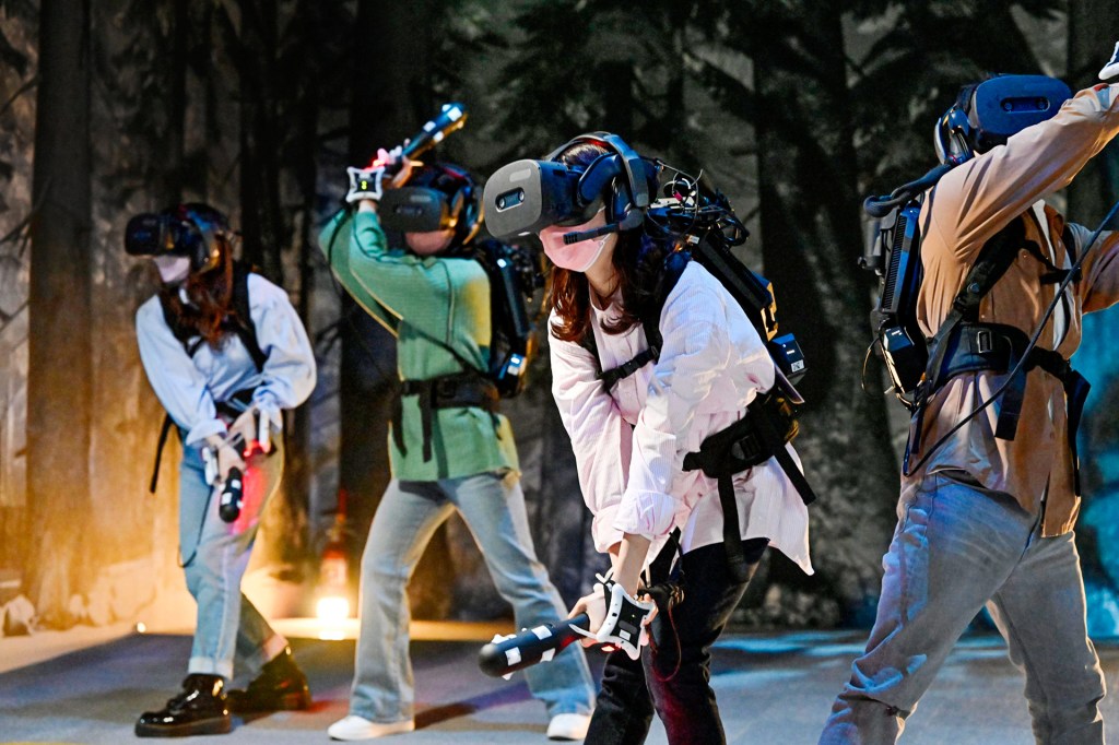 NUEVA REALIDAD Experiencias de RV como esta, en un parque de diversiones de Japón, mezclan los mundos digitales y físicos.