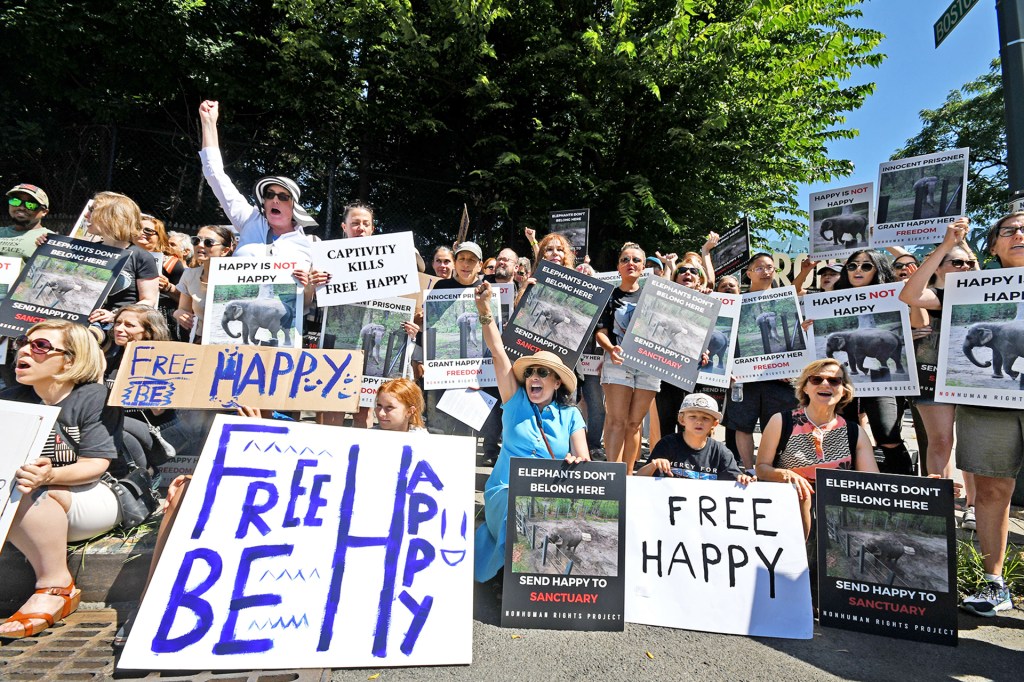 PROTESTA Una multitud se reúne en el Zoológico del Bronx para pedir la liberación de Happy a un santuario de elefantes.