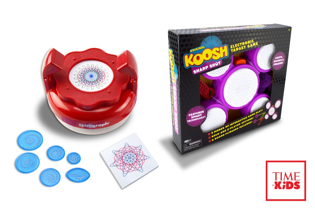 These classic toys, both from PlayMonster, are revamped for your generation. The Koosh Sharp Shot game puts a spin on soft and squishy Koosh balls, which were all the rage in the late ’80s and ’90s. In this slingshot game, they’re used to test a player’s aim. The Spirograph Animator is a modern twist on the original Spirograph. It was introduced in 1965 and lets you create detailed geometric drawings. The Spirograph Animator takes the fun a step further: Once you create your designs, set them on the animator. It will spin the drawings and start a light show. This creates an animated effect.