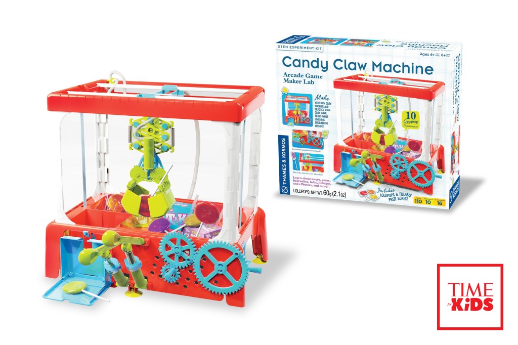 Candy Claw Machine, from Thames & Kosmos, puts a spin on the classic arcade game. This do-it-yourself kit lets you build and engineer your own claw machine. Use gears, cranks, belts, and levers to make it work. Then add your favorite treats and practice reaching for prizes. The set also comes with three interchangeable claw types you can use to scoop and score.